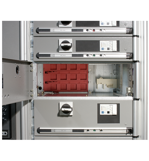 带有安全门装置的抗电弧型全封闭垂直母线系统 (ARCSAFE),采用了独有的U槽状π型铜母线和安全门及散热型绝缘后盖板,具有载流量高(最高可达2000A),当抽屉单元被抽出时,垂直母线随即完全被安全门屏蔽绝缘